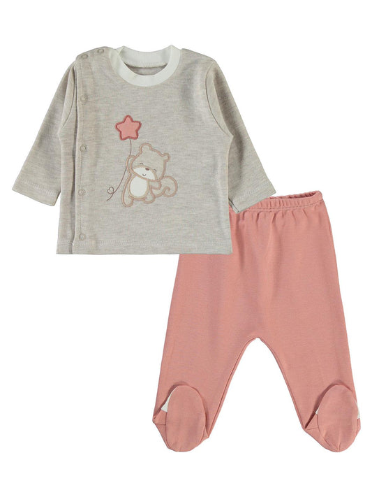 Civil baby yıldız ayıcık nakışlı 0-1 ay zıbın setleri - pudra