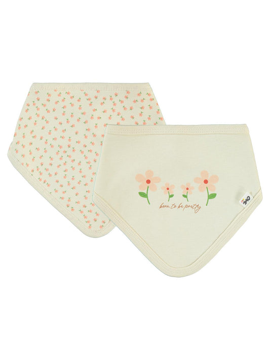 Civil baby çiçek baskılı ağız bezi ve mendili - ekru