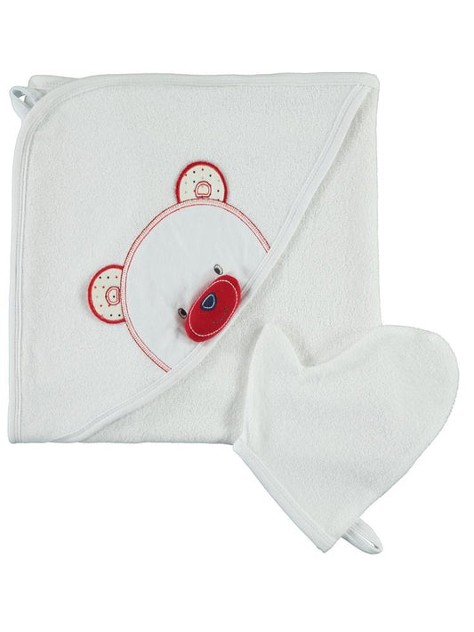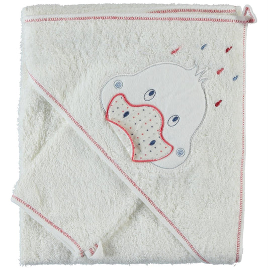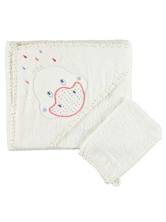 Albimini ördek nakıslı bebek kurulama havlusu - kırmızı