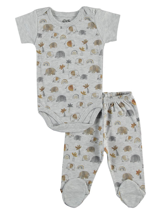 Civil baby sevimli geometrik hayvanlar emp. baskılı zıbın takımları - ekru