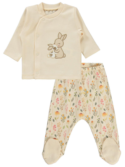 Civil baby kabartmalı ayıcık baskılı 0-1 ay zıbın takımları - bej
