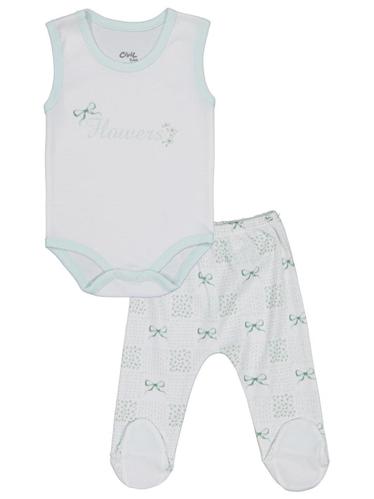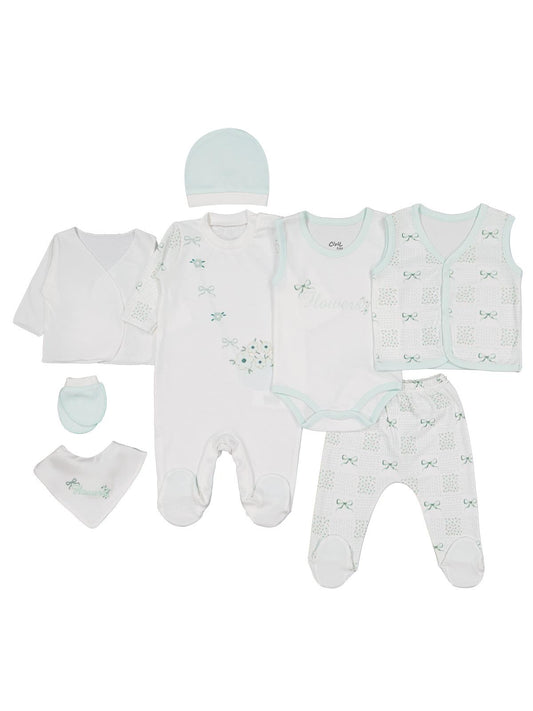 Civil baby çiçek baskılı 8 li 0-1 ay zıbın setleri - yeşil
