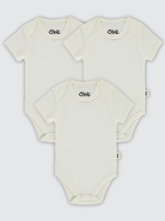 Civil baby düz kısa kol 3 lü 0-1 ay çıtçıtlı badi - beyaz