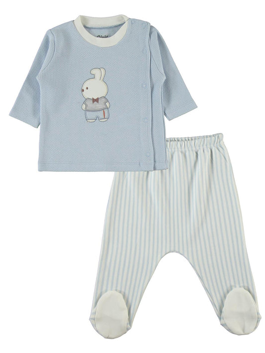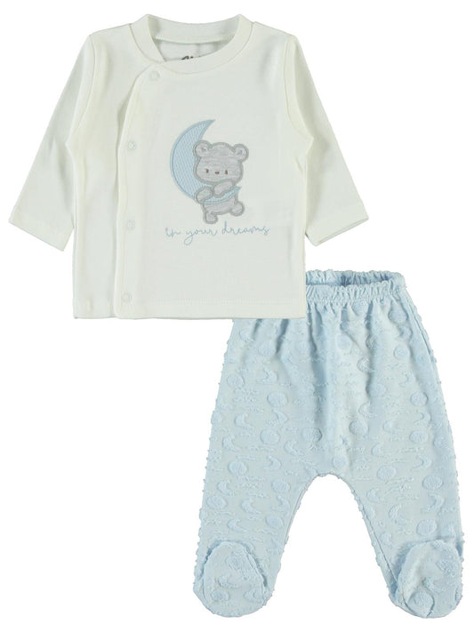 Civil baby papyonlu ayıcık nakışlı 0-1 ay zıbın setleri - mavi