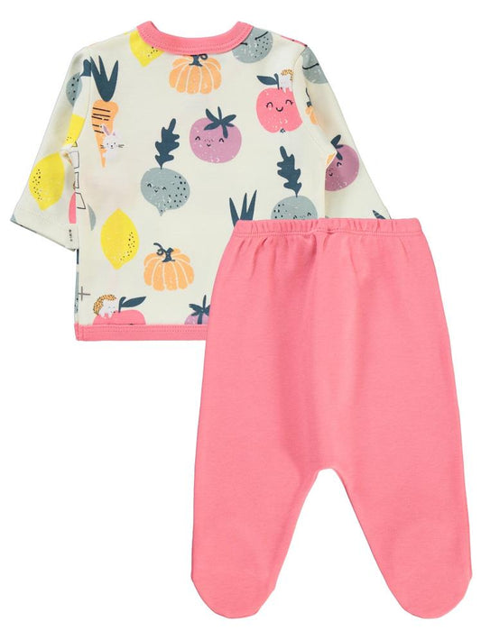 Civil baby meyve ve sebze empirme baskılı 0-1 ay zıbın takımları - pembe