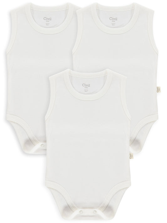 Civil baby düz sıfır kol 3 lü 0-1 ay çıtçıtlı badi - beyaz