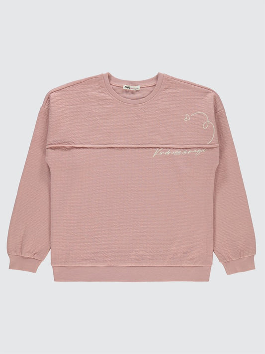 Civil girls kalp baskılı 10-13 yaş sweatshirt - pudra