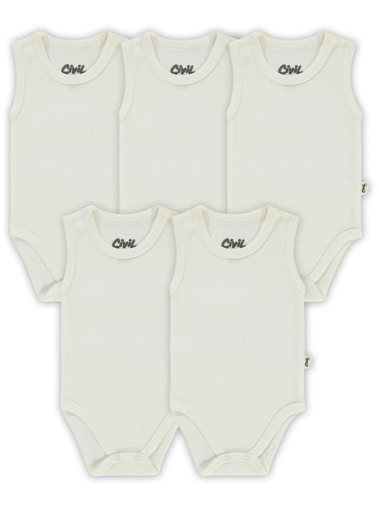 Civil baby 5 li düz basic sıfır kol 3-9 ay çıtçıtlı badi - beyaz