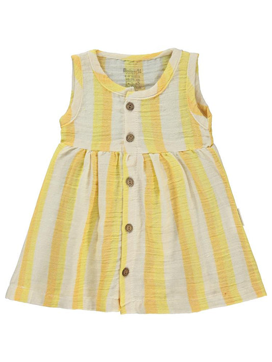 Miniworld önden düğmeli çizgili müslin 6-18 ay takım - hardal
