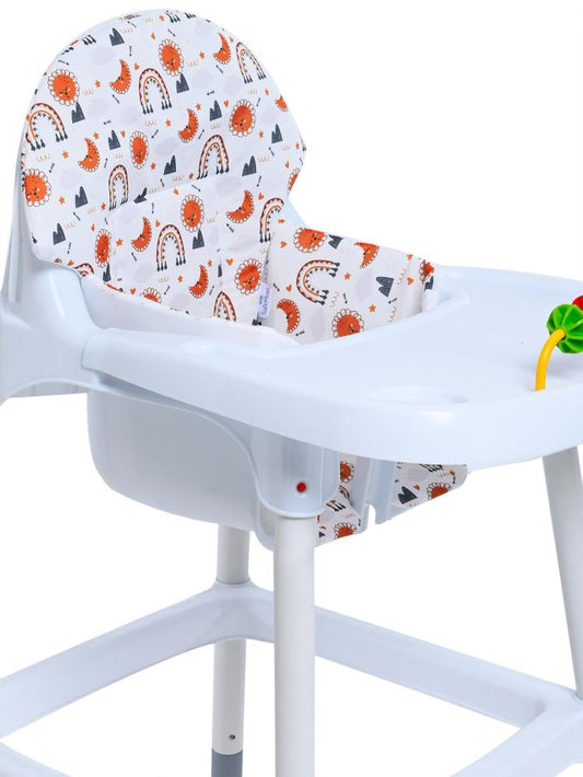 Uygun boyutu ve arkadan bağcıklı yapısı ile tüm mama sandalyelerine uyacak şekilde tasarlanmıştır.Dış kılıf %100 pamuk, iç malzeme sünger
