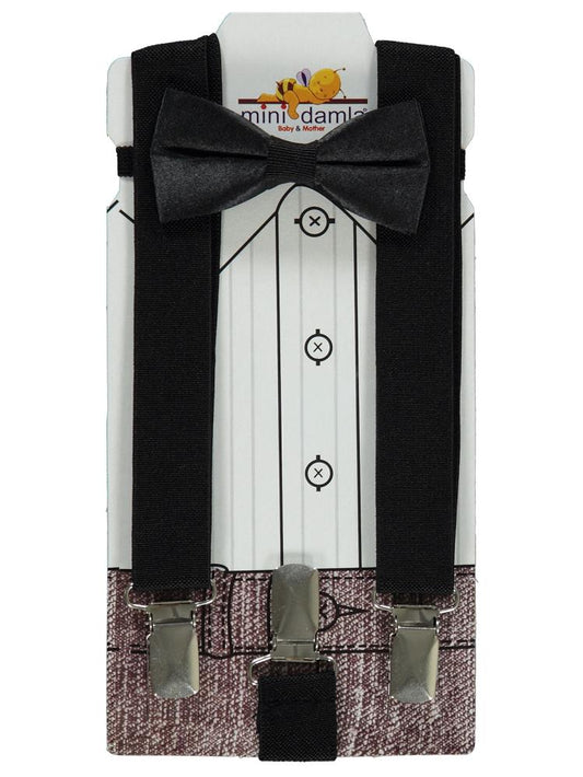 Mınıdamla papyon pantolon askısı takımı - siyah