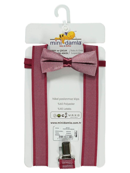 Mınıdamla papyon pantolon askısı takımı - bordo