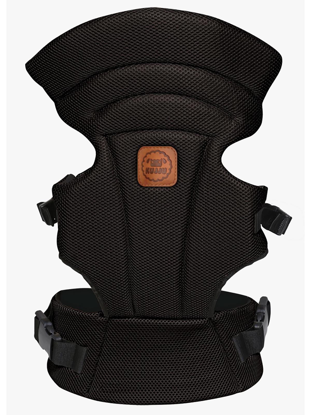 Kujju Comfort Air Kanguru'da bebekler bacak arasından asılmak yerine, popolarının üzerine yerleştirilir.