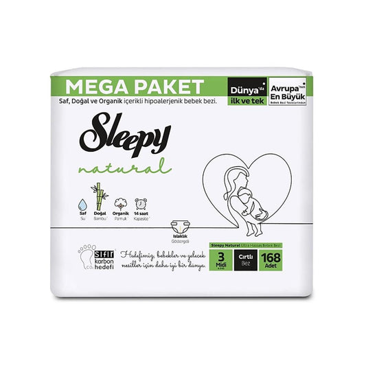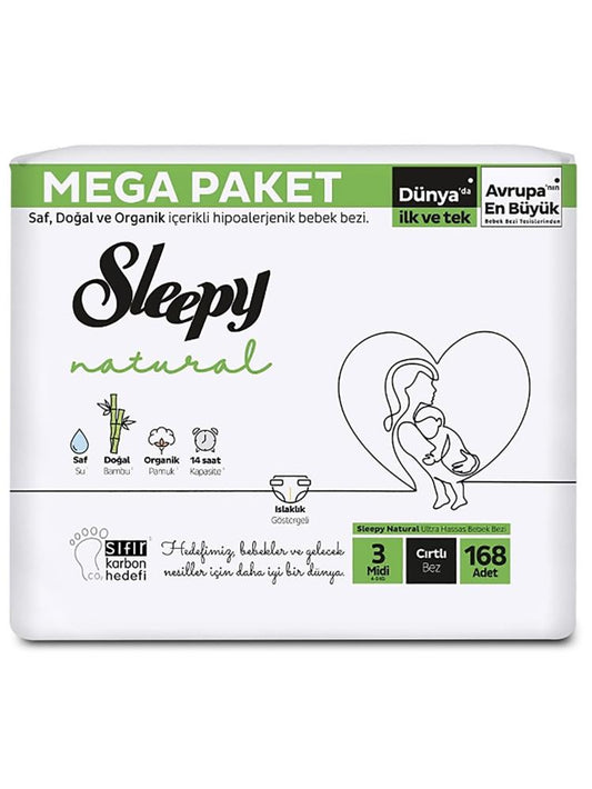 Sleepy natural bebek bezi mega fırsat paketi 3 midi 4-9 kg 168 adet