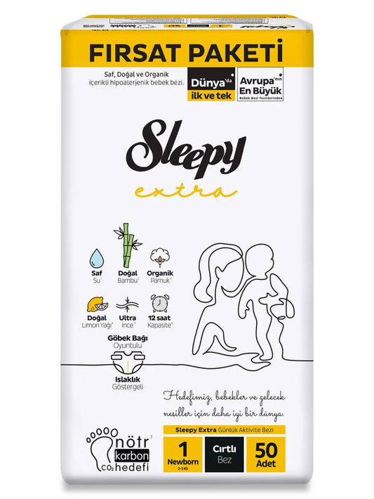 Sleepy extra günlük aktivite fırsat paketi bebek bezi 1 yenidoğan numara 50 adet